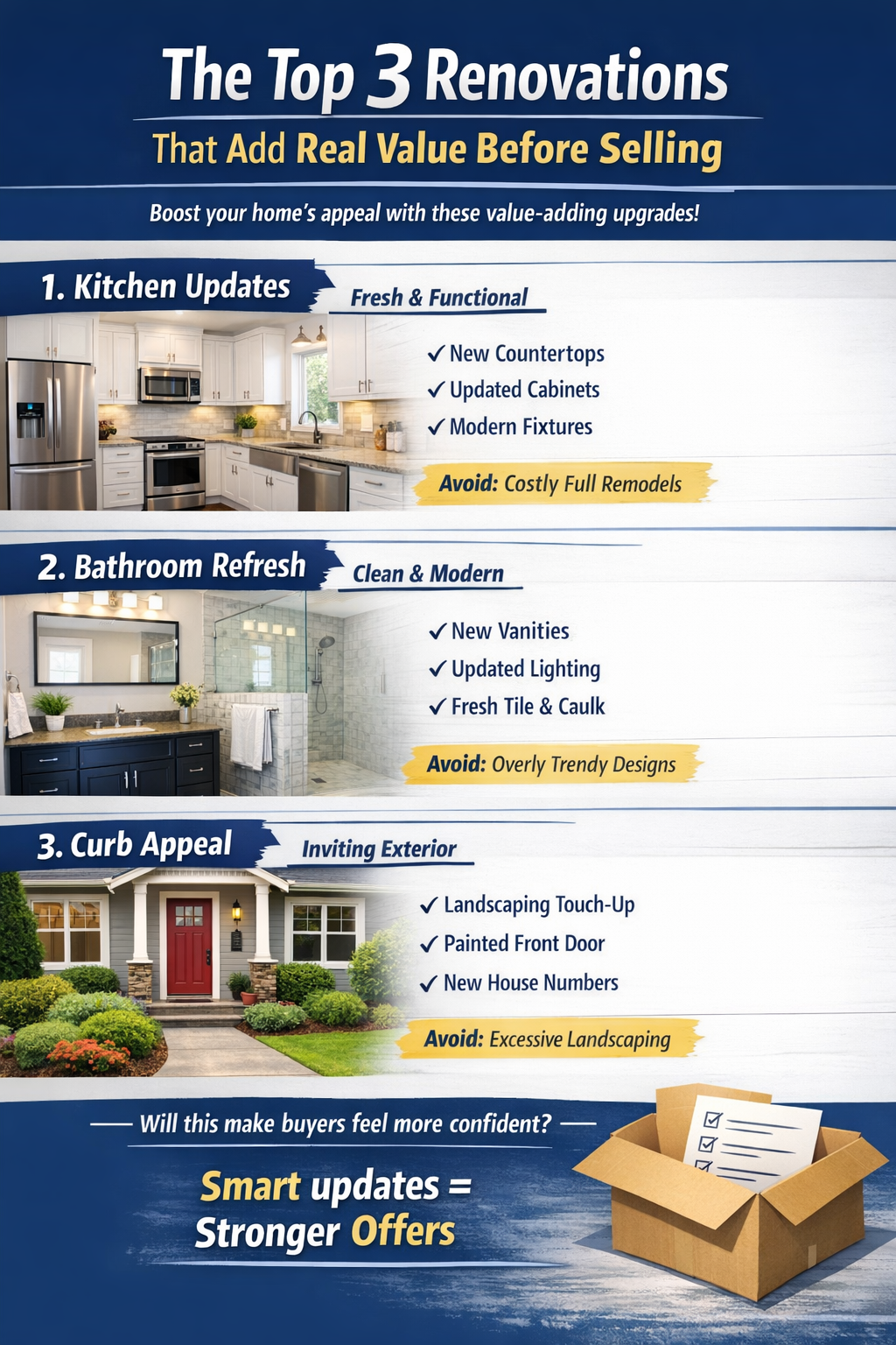 If you’re going to invest before selling, here are the three renovations that consistently add real value.